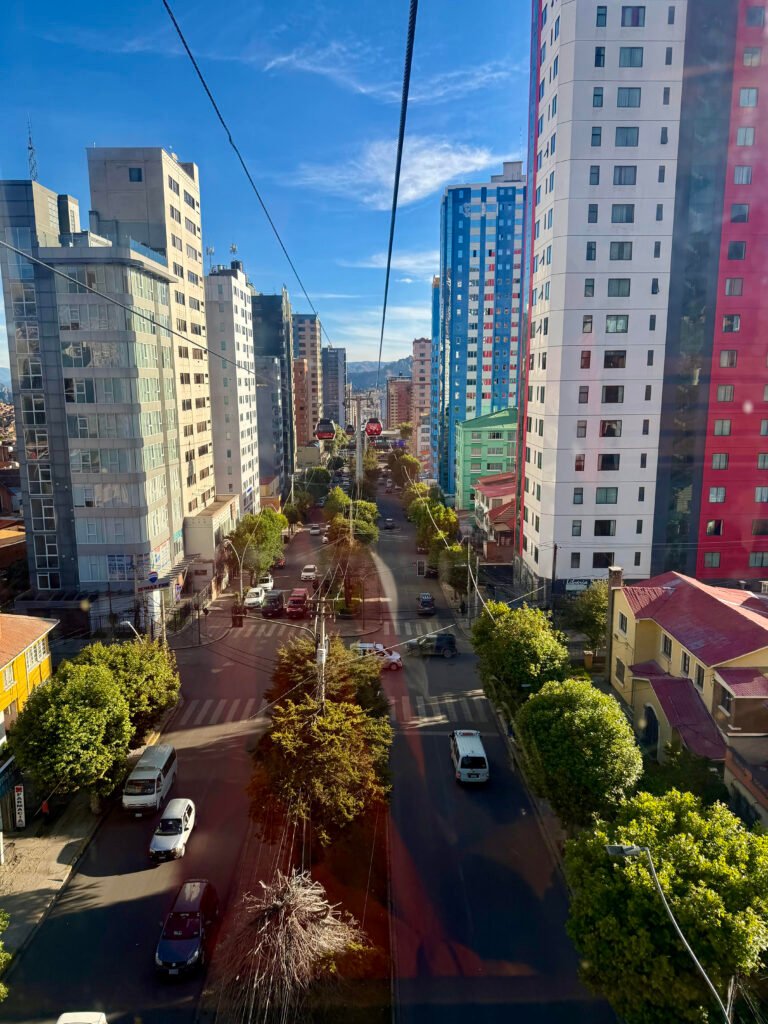 The Teleferico cable car system in La Paz provides an affordable and efficient mode of transportation. It allows residents and tourists alike to travel across the city and into El Alto. Standard ticket prices for a single journey are 3 Bolivianos. It’s an additional 2 Bolivianos if you transit to another line, depending on the specific route taken.